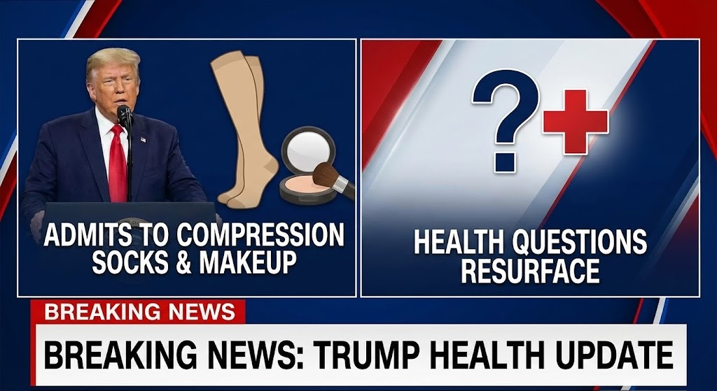 Former US President Donald Trump has acknowledged wearing medical compression socks and using makeup to conceal visible bruising, reigniting debate about transparency, age, and presidential health. The admission follows weeks of speculation sparked by photographs and video footage showing swelling around Trump’s ankles and a dark bruise on the back of his right hand during public appearances.