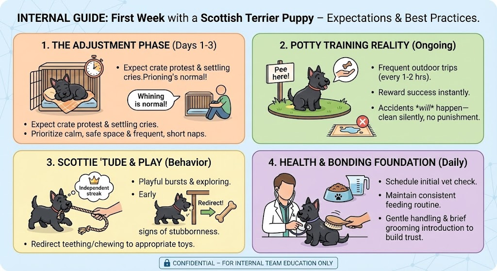This guide walks you through a calm, realistic first seven days. Short paragraphs. Real voice. A few quick anecdotes from my own messy first week with a Scottie. No fluff. No em dash.